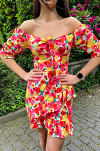 Sukienka hiszpanka Nina w kwiaty czerwono-żółta