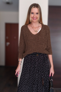- Uniwersalny charakter – założysz go do spódnicy, eleganckich spodni czy ulubionych jeansów.