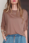 Bluzka z frędzlami Francesca cappuccino