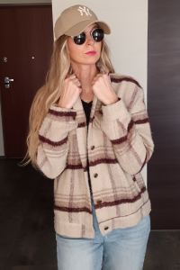 Kurtka w kratkę Viola beżowo-czekoladowa