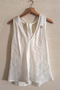 Top Luna to wyjątkowa propozycja dla kobiet, które cenią sobie styl, wygodę i szlachetne materiały. Uszyty z wysokiej jakości lnu, wyróżnia się lekkością, przewiewnością i niebanalnym krojem. Głęboki dekolt V z efektownym wiązaniem z tyłu oraz dekoracyjna broszka z perłą dodają mu subtelnego uroku w stylu vintage.