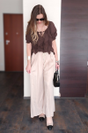 Luźny krój typu palazzo – zapewnia maksymalny komfort i optycznie wydłuża nogi