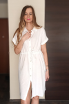 Lekka, naturalna i niezwykle wygodna – sukienka Sara uszyta z 100% bawełnianego muślinu to idealna propozycja na ciepłe dni. Krój z krótkim rękawem, zapięciem na guziki i regulowanym wiązaniem w talii sprawia, że dopasowuje się do każdej sylwetki i zapewnia maksymalny komfort.
